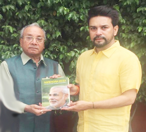 Shri Anurang Singh Thakur, Minister for I & B, Youth Affairs & Sports was receiving a Special Book from Mr. Naren Shah in English on Honourable PM Shri Narendrabhai Modi
