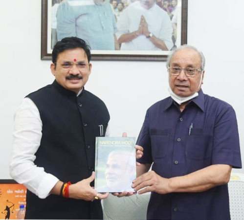 Shri Devusinh Chauhan, Ministry of State for Communications Goi, was receiving a Special Book from Mr. Naren Shah in English on Honourable PM Shri Narendrabhai Modi