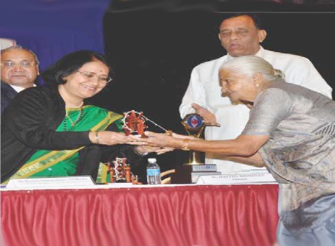 Pushpaben Kavi, 84 yrs. Old Social Worker of Mahila Utkarsh Kendra was honoured by Vision World Academy at Women Achievers Visionary Award Function, Presented by Chief Guest, Dr. Manjula Subramaniam, IAS (Retd.) Ex. CVC GOG on 28 jan 2012.