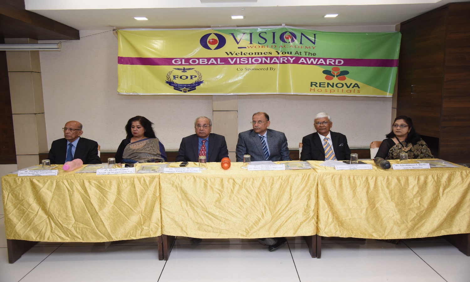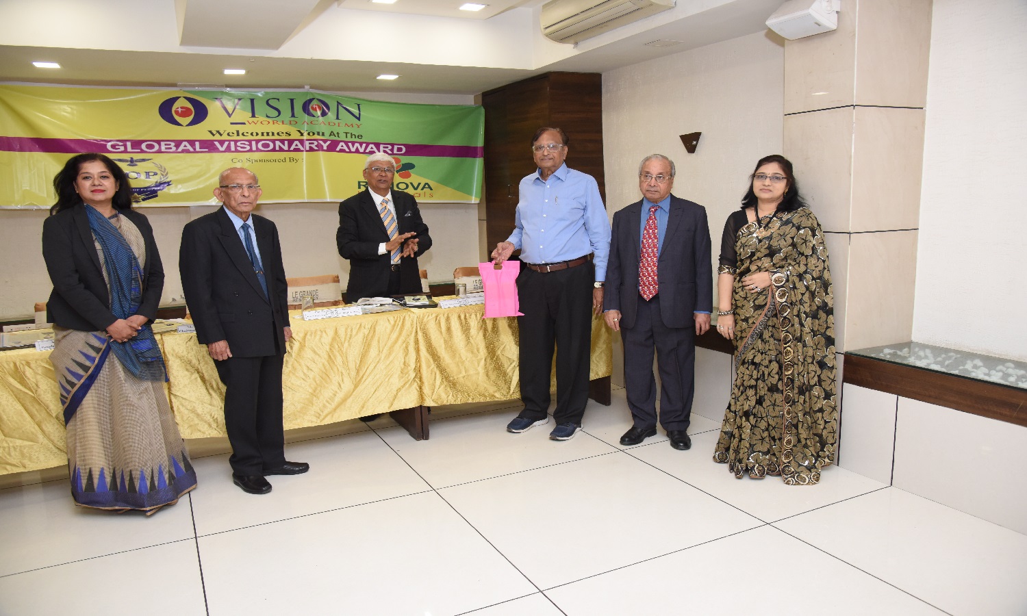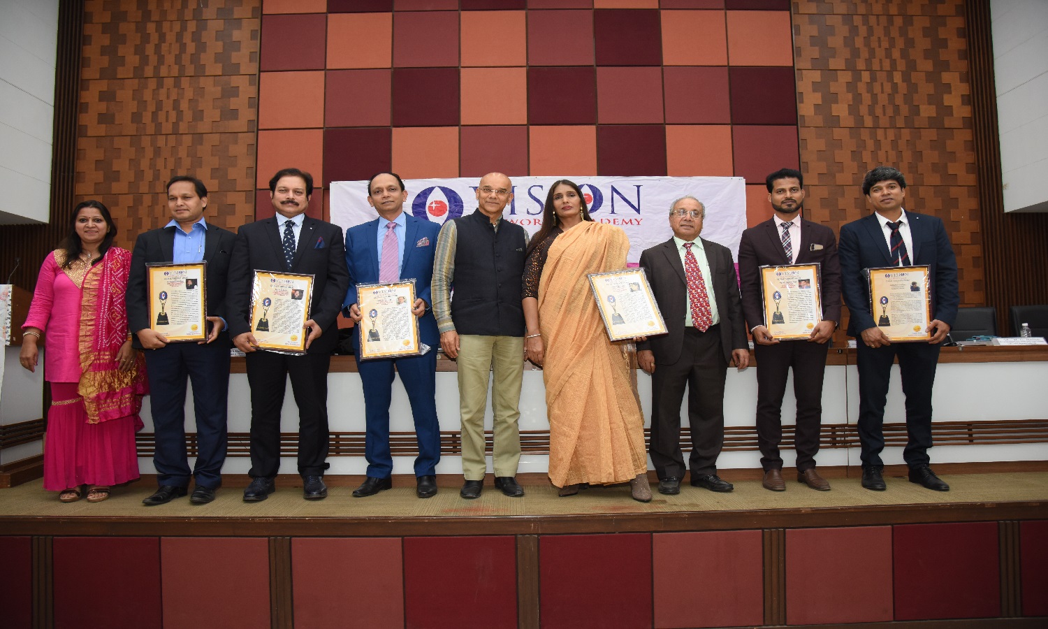 Dignitaries From Different Cities & Sectors were Honoured with GLOBAL VISIONARY AWARD from right Mr. Siddharth Choudhary, Mr. Iqbal Hussain Kazi, Mr. Naren Shah, Actor Anu Aggarwal, Mr. Nayan Parikh, Mr. Jagannath (jaggi) Mr. R.S Rajan, Mr. Sushant Choudhury, Mrs. Rupal Shah CEO Vision World Academy. 22th January 2020.