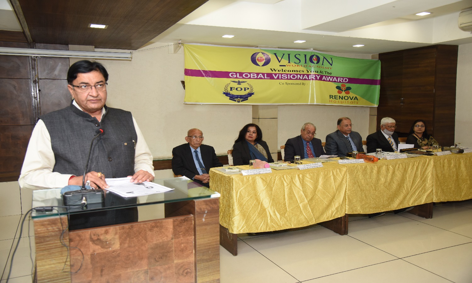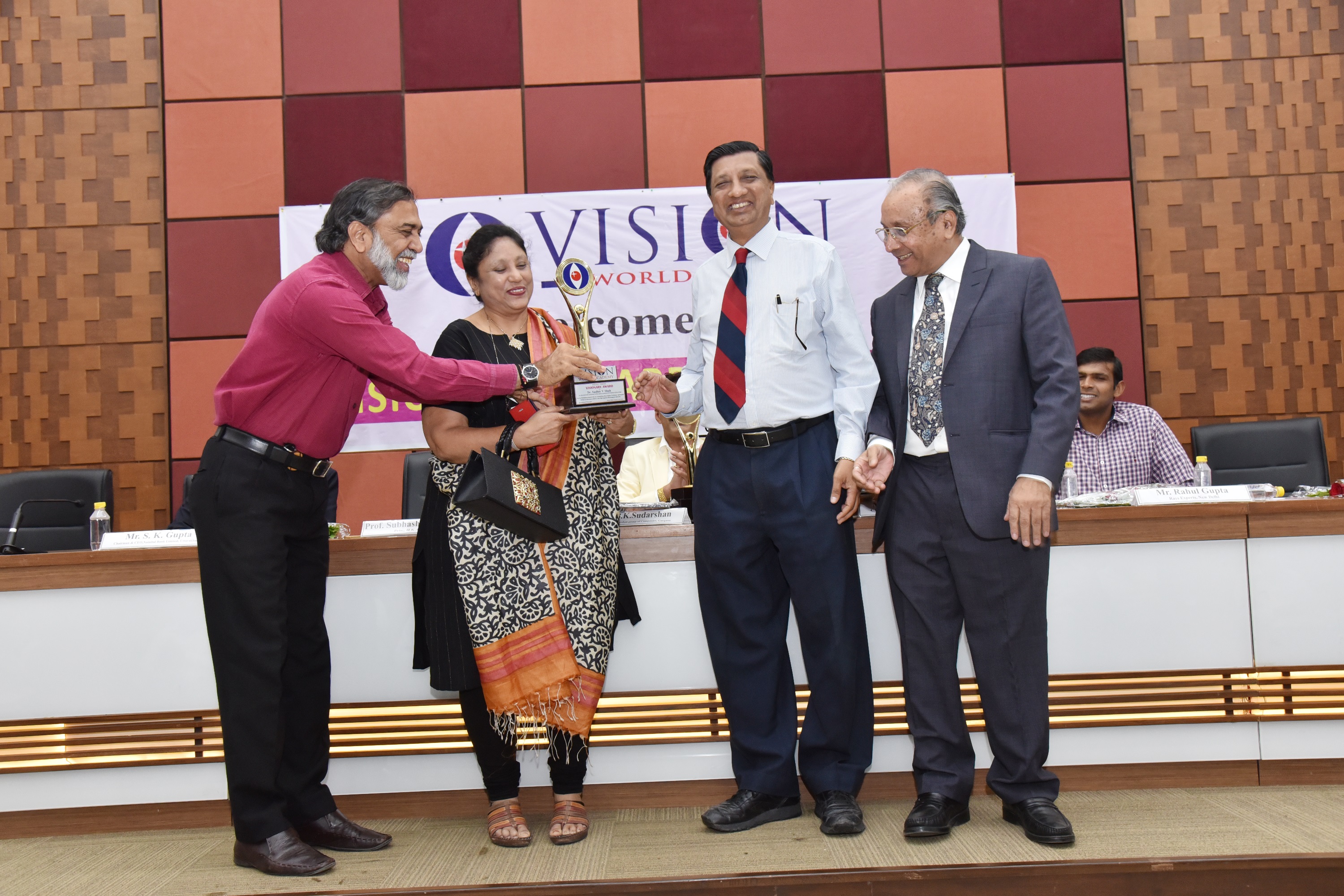 Ex. Chairman Mr. Suresh Gupta, Nainital Bank (BOB) Mr. Gupta was honoured with with Global Visionary Award by Dr. Vyas Ex. Director NID, Mr. Naren Shah is in the picture.