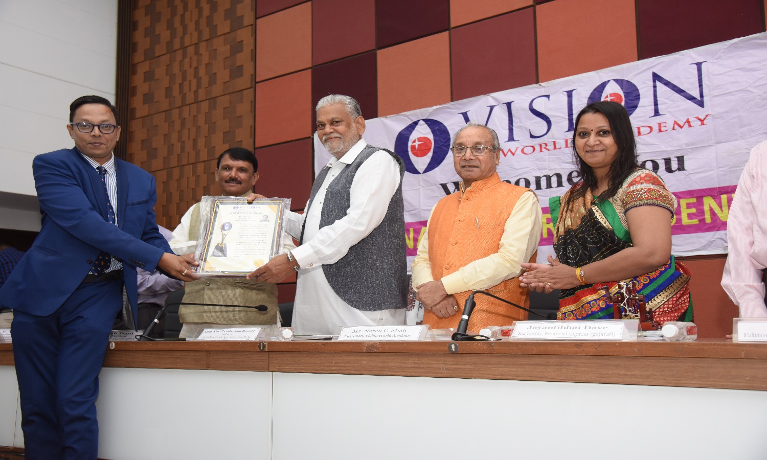 Mr. Jeffrey Australia, Smt. Ratana Prasad USA, mr Dilip Mansukhani Japan, IAS S.K Nanda & VC Gujarat Vidyapith,Anamik shah in VWA Award ceremony