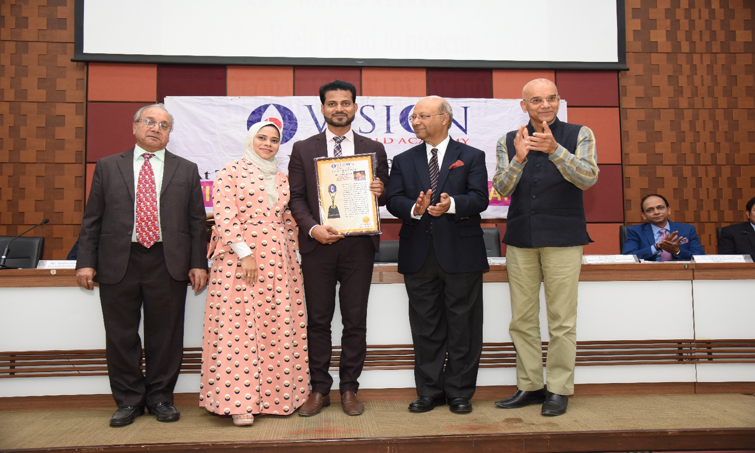 Mr. & Mrs Iqbal Hussain Kazi, MD, Al Shaheen Technical W.L.L , Kuwait. Was Honoured By IAS Shri Keshav Varma, Chairman, Sabarmati Riverfront. Mr. Nayan Parikh, Chief Guest, & Mr. Naren Shah Chairman, Vision World Academy 22th January 2020.