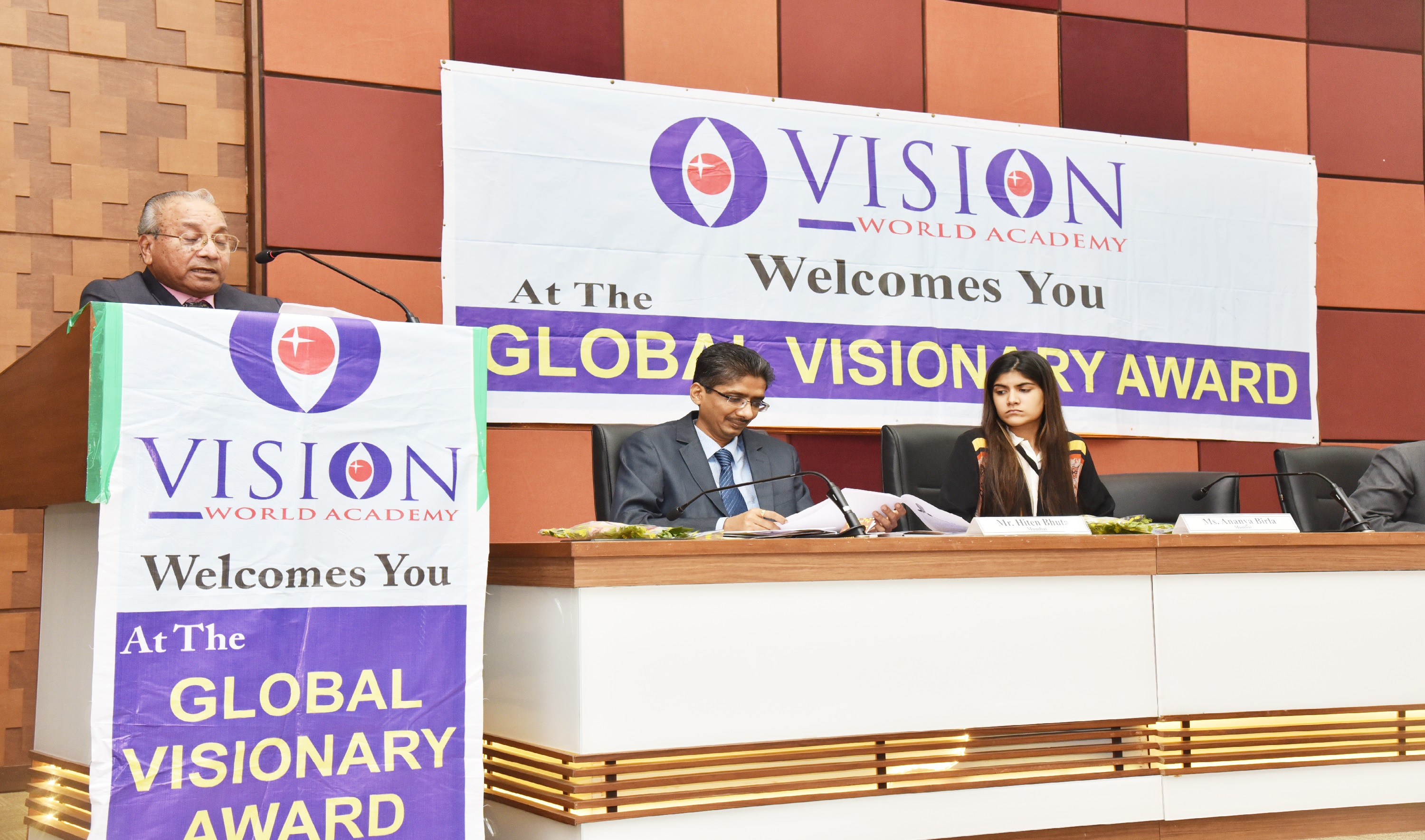 Ms. Ananya Birla, Director, Aditya Birla Group, was Honoured with Global Visionary Award By Chief Guest Justice S.M Soni, Mr. Naren Shah, are in the picture. On 20th February 2016.
