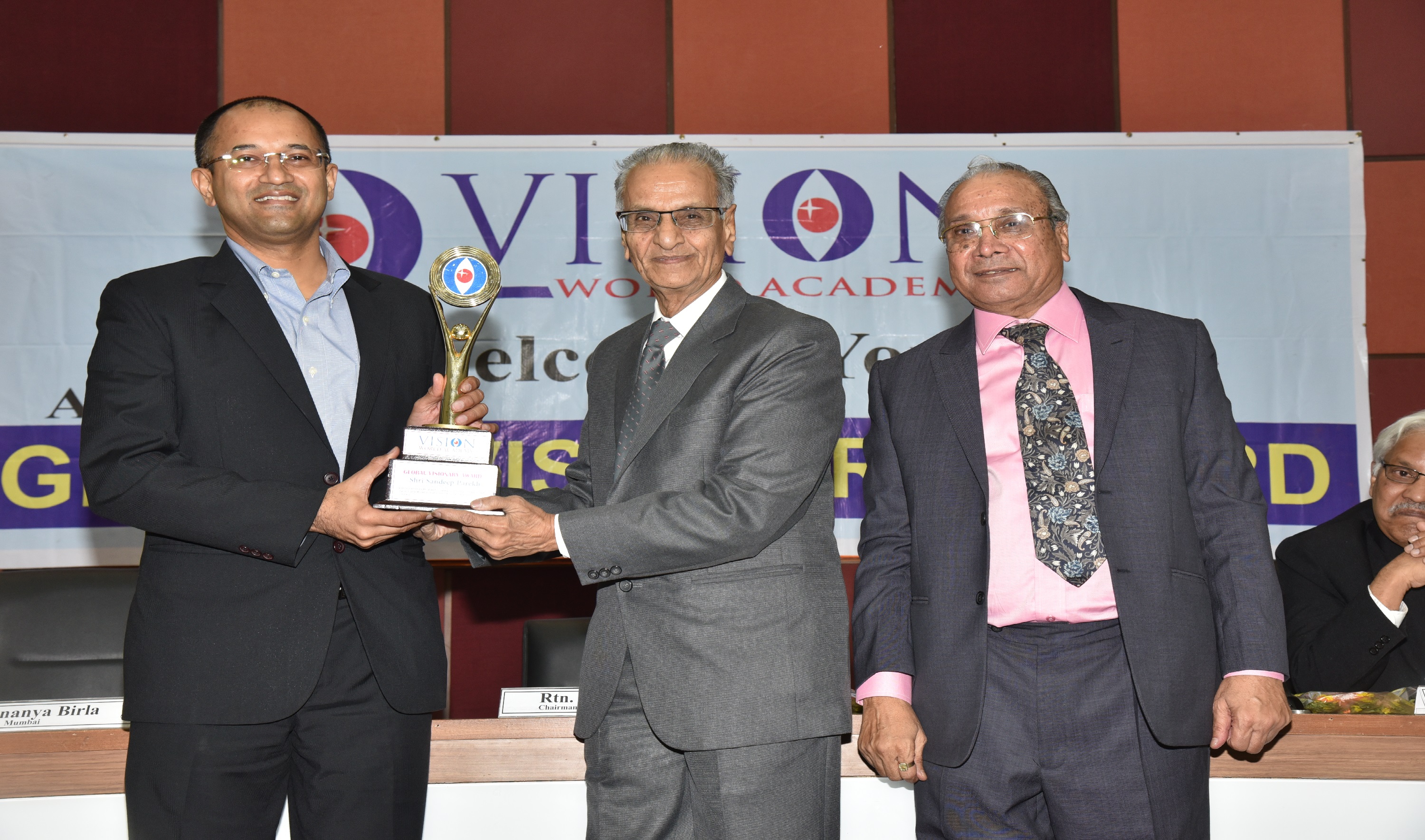 Mr. Sandeep Parekh, Finsec Law Advisors, was honoured with Global Visionary Award By Chief Guest Justice S.M Soni, Mr. Naren Shah, are in the picture. .On 20th February 2016.