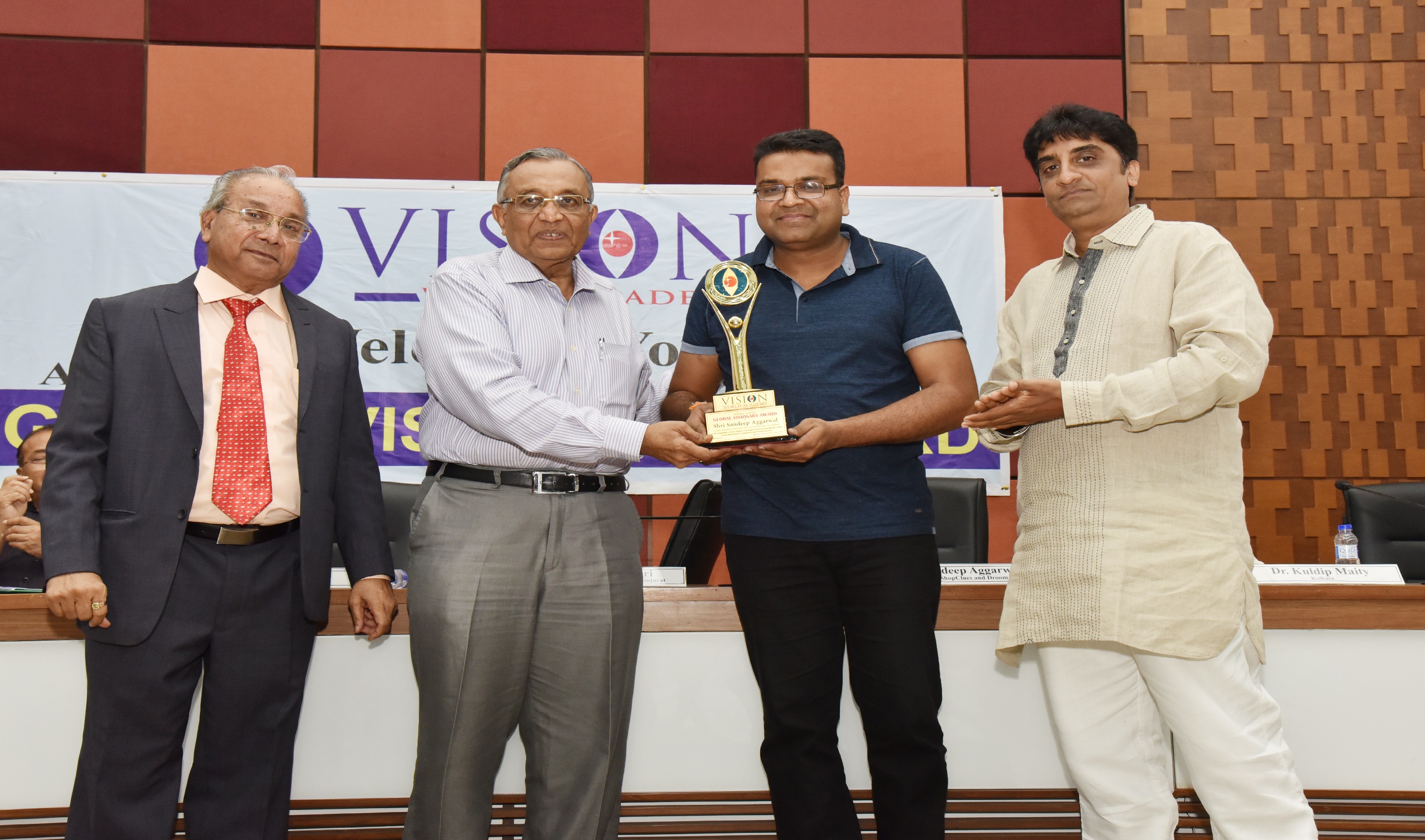 Mr. Sandeep Aggarwal, Shopclues USA, was Honoured with Global Visionary Award by Chief Guest, Ex. CS P.K Laheri IAS, DR. Uday Modi, & Mr. Naren Shah are in the picture on 28th May 2016.